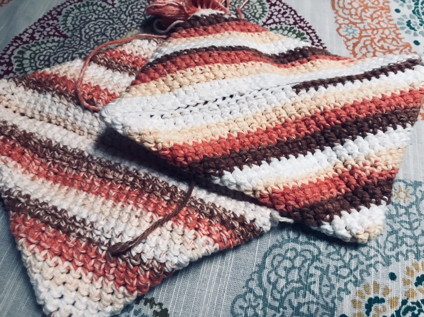 I’m making potholders for the church kitchen. Someone awesome asked me to make some for her this Summer. I had never made them before or even seen them but she lent me the ones that her mother had made and I searched online and found a pattern. I enjoyed making them and made some for myself after and now consider them a lovely set to gift.