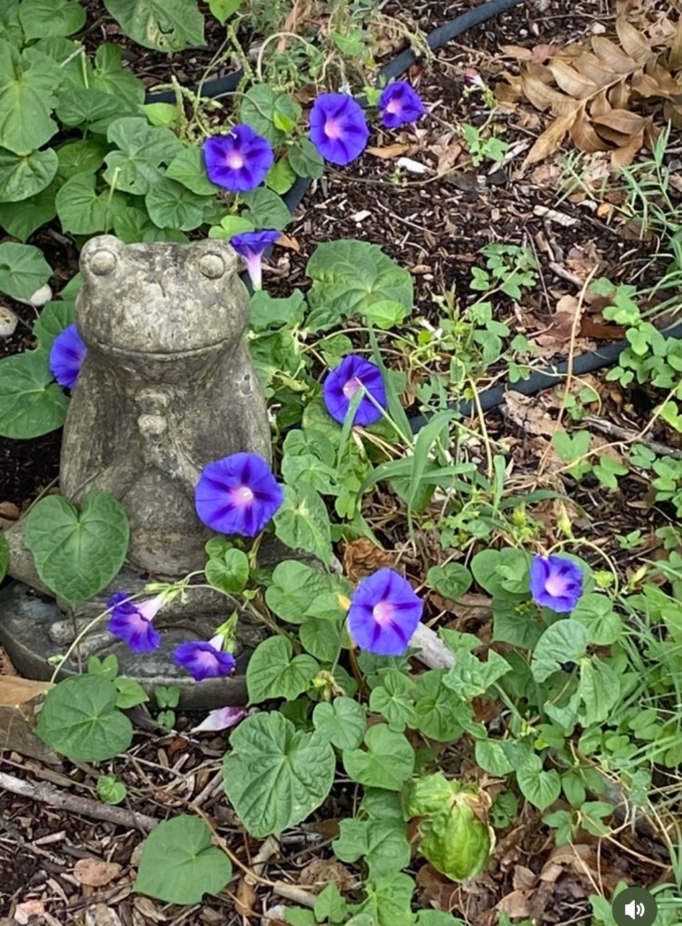 With the sweat running down my brow and with my hands in the earth I feel so much peace. I smile at what looks like returning sedum and the not so surprising purslane. Since it wasn’t my plan to come and work in the garden beds, I dont have my bucket to collect what I pull. So I stack my fist full of crabgrass in front of the stone buddha frog that stands guard here like some sort of strange offerning.
